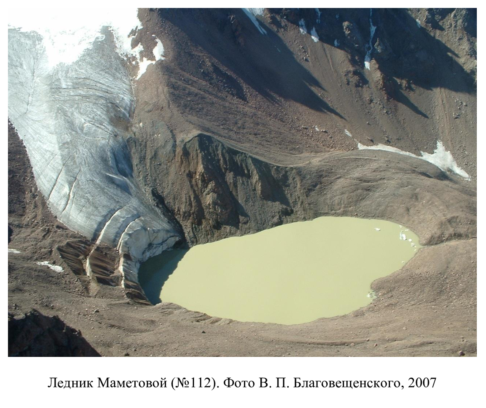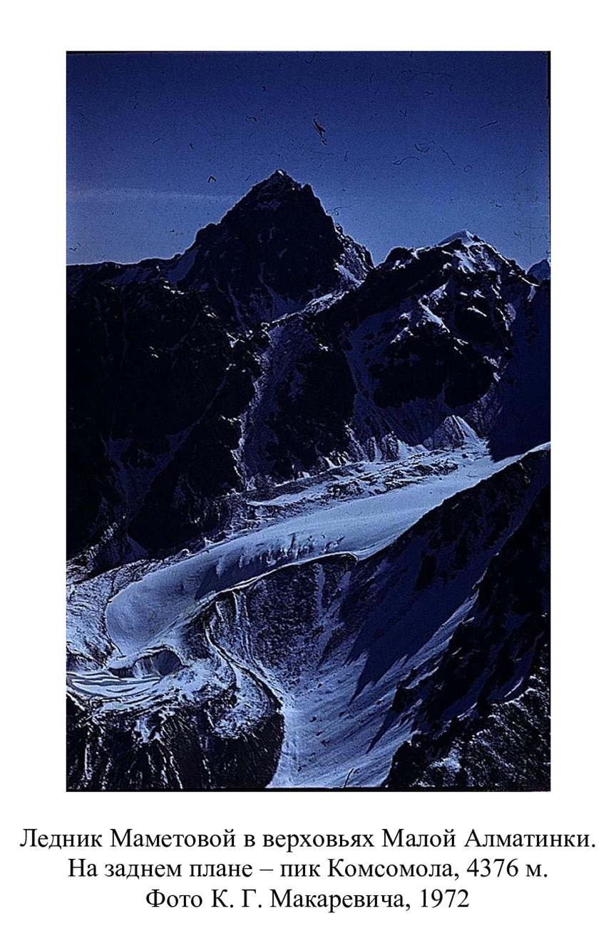 Это коллекция фотографий ледника Маметовой собранная исследователями сквозь года. Коллекция была предоставлена Центрально Азиатским Региональным Гляциологическим Центром (ЦАРГЦ).
