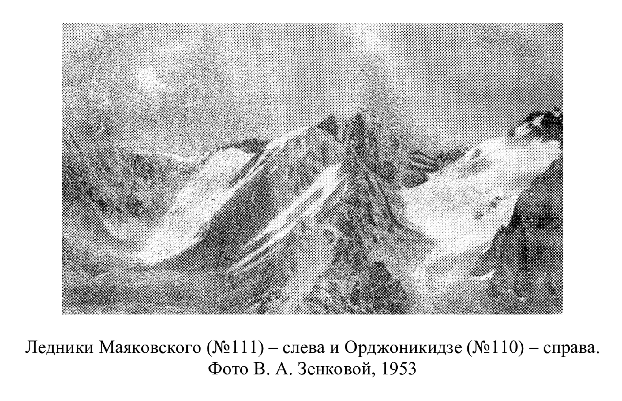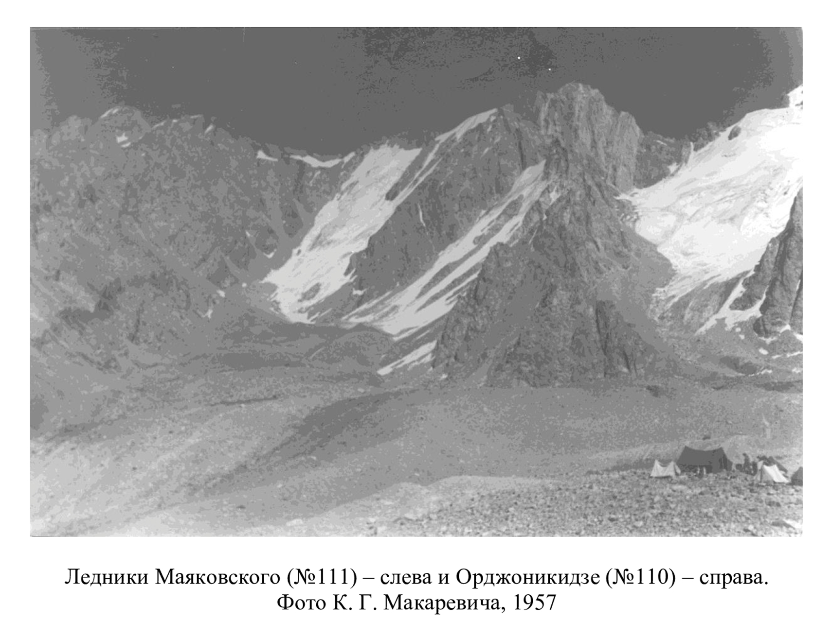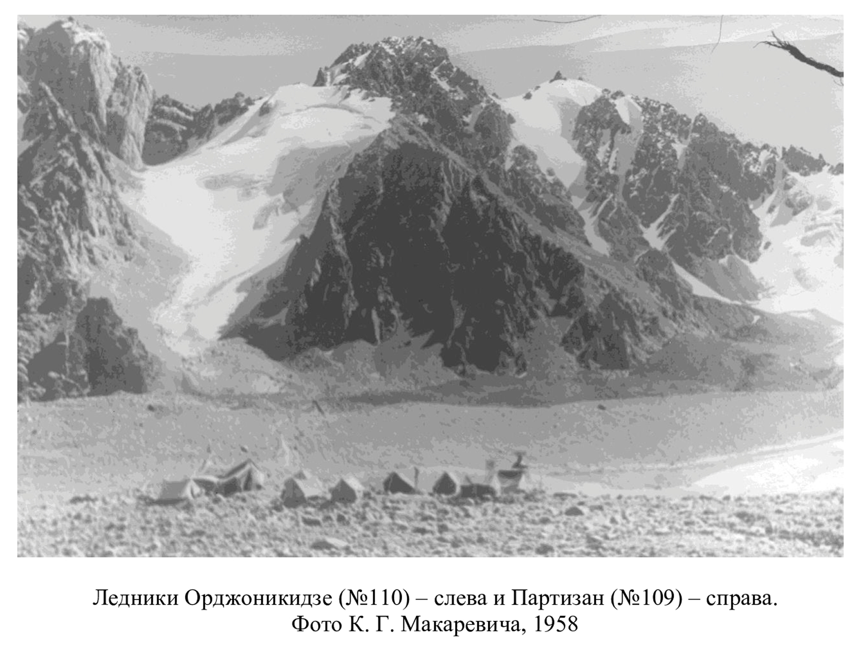 Это коллекция фотографий ледников Орджоникидзе, Партизан и Маяковского собранная исследователями сквозь года. Коллекция была предоставлена Центрально Азиатским Региональным Гляциологическим Центром (ЦАРГЦ).